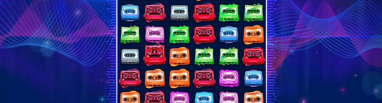 На ігровому полі гравці побачать різнокольорові касети для аудіо-магнітофонів та плеєрів. Виплати починаються з 5 однакових символів у кластері. Найбільші індекси та призи чекають на гемблерів за складання 20+ іконок.